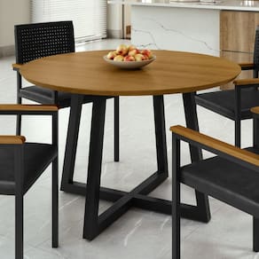 A mesa redonda Coliseu com tampo em MDF e base em aço é uma peça versátil e moderna, ideal para salas de jantar. Seu design simples e elegante, aliado à resistência do MDF e à robustez da base em aço, garante
