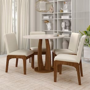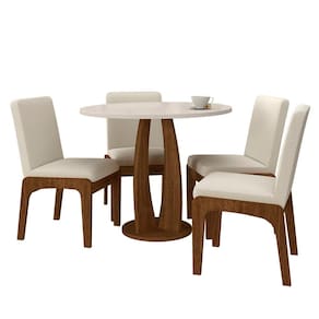Mesa Redonda Merano 4 Cadeiras Estofadas Freijó/off/bouclé Off - M.a - Branco