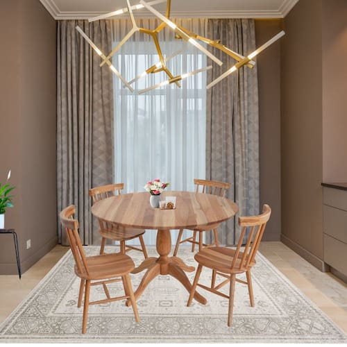 (Mesa avulsa, não acompanha cadeiras.) Mesa pé central com estrutura e tampo em madeira maciça, base do tampo em mdf. Diâmetro do tampo 120cm, comporta até seis lugares, com pintura PU de alto padrão, ideal para quem procura compor um ambiente em um estilo contemporâneo. Acabamento: PU Acabamento do Tampo: PU Ambiente Principal: Sala de Jantar codigo_ean: 7900288107732 Complexidade da Montagem: Baixa: pode ser montado por uma pessoa sozinha Cor: Natural Cor do Produto: Natural Dobrável: Não Escala de Brilho: Fosco Espessura do Tampo: 30 mm Extensível: Não Informações Complementares: Mesa avulsa, não acompanha cadeiras. Itens Inclusos: 1 Mesa, Kit Ferragens e Manual Montagem Linha ou Coleção: Milena Manual de Montagem e Instalação: https://product-hub-prd.madeiramadeira.com.br/983896/documents/16b136ab-59b9-49b0-8772-706e2de7ed15498mesapecentralmilena2022.pdf Marca: DEISS Material da Base: Madeira Maciça Material do Tampo: Madeira Maciça Material Principal: Madeira Maciça Medida do Tampo (L x C x E): 120x120x30cm Necessita Montagem: Sim Origem do Produto: Nacional Peso: 35,66 kg Possui Rodízio: Não Possui Vidro: Não Recomendações de Uso, Manutenção e Limpeza: Pano úmido sem uso de produtos químicos Sistema de Montagem: Parafusos Suporta Até (kg): 50 kg Tipo de Madeira Maciça: Eucalipto Tipo de Madeira Maciça da Base: Eucalipto Tipo de Madeira Maciça do Tampo: Eucalipto Marca: Não Informado