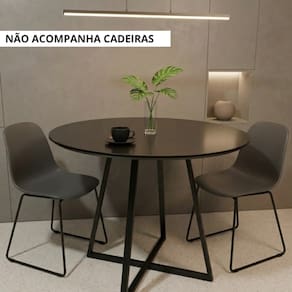 CARACTERÍSTICAS DO PRODUTO Tipo: Mesa de Jantar Modelo: Lais Formato: Redondo Cor do Tampo: Preto Material do Tampo: MDF 18mm Estrutura/Pés: Ferro com pintura preta Design: Moderno e versátil