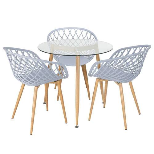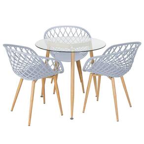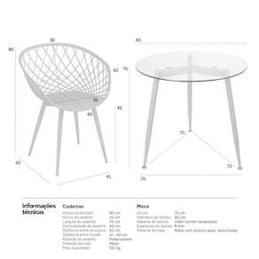 Quantidade de lugares: 3 | Altura do assento (cadeiras): 45 cm | Largura do assento (cadeiras): 35 cm | Comprimento do assento (cadeiras): 43 cm | Material do assento (cadeiras): Polipropileno | Material da base (cadeiras): Metal com pintura epóxi texturizada | Peso suportado (cadeiras): 130 kg | Material do tampo (mesa): Vindro incolor temperado 8 mm | Material dos pés (mesa): Metal com pintura epóxi texturizada | Diâmetro (mesa): 80 cm | Altura (mesa): 75 cm | Altura: 75 cm | Largura: 80 cm | Fabricante: Mobili | RBN: 17100657011 | Cor: Multicolorido | Garantia do fabricante: 3 meses | Peso do produto: 10 kg | Produto: Conjunto de Mesa e Cadeiras Cor: Cinza