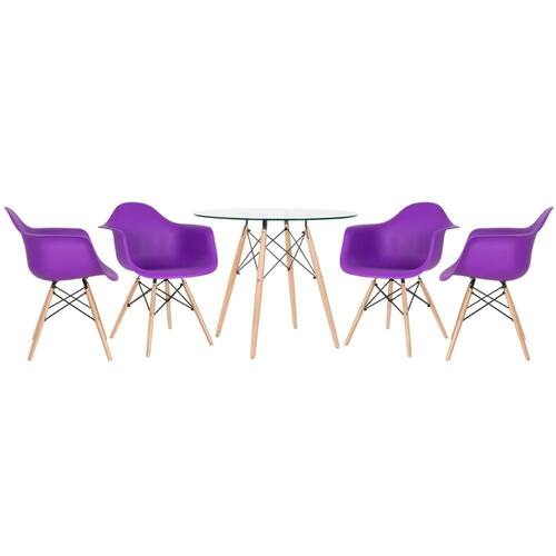 Altura: 75 cm | Cor: Multicolorido | Garantia do Fabricante: 3 meses | Largura: 90 cm | Peso do Produto: 20 kg | Produto: Conjunto de Cadeiras | Quantidade de lugares: 4 | Material do tampo (mesa): Vidro incolor 8 mm | Material da base (mesa): Madeira e aço | Altura (mesa): 75 cm | Diâmetro (mesa): 90 cm | Material do assento (cadeiras): Polipropileno | Material da base (cadeiras): Madeira e aço | Altura do assento (cadeiras): 44 cm | Largura do assento (cadeiras): 40 cm | Profundidade do assento (cadeiras): 45 cm | Fabricante: Mobili | RBN: 17100657011 | Peso suportado: 130 kg | Tonalidade: Multicolorido | Estado de origem: SC Cor: Roxo