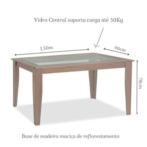 A Mesa de Jantar Canadá combina bem em qualquer estilo de ambiente! Produzida em Madeira Maciça de Reflorestamento, recebe acabamento em Verniz Acetinado, garantindo ainda mais a qualidade e resistência da peça. Possui tampo de vidro fumê no centro, trazendo ainda mais charme ao ambiente! Acabamento: Pintura Acabamento da Base: Pintura Acabamento do Tampo: Pintura Ambiente Principal: Sala de Jantar Atóxico: Não codigo_ean: 7909903371732 Complexidade da Montagem: Média: pode ser montado por mais de uma pessoa e/ou necessite de maior conhecimento para montagem Cor: Cappuccino Cor do Produto: Cappuccino Dobrável: Não Escala de Brilho: Semi-Brilho Espessura do Tampo: 18 mm Extensível: Não Itens Inclusos: 1 Mesa, Manual de Montagem e Kit Ferragens Linha ou Coleção: Canadá Manual de Montagem e Instalação: https://product-hub-prd.madeiramadeira.com.br/861516/documents/de2b39b6-b7ef-41d8-a4d0-162f8736dc48mw0313mesaretangularcanadA.pdf Material da Base: Madeira Maciça Material do Tampo: Vidro Material Principal: Madeira Maciça Medida da Base (A x L x P): A:78 L:150 P:90 Medida da Mesa (A x L x P): 78cm x 150cm x 90cm Medida do Tampo (L x C x E): 150cm x 90cm x 1,8cm Necessita Montagem: Sim Origem do Produto: Nacional Peso: 37 kg Possui Portas: Não Possui prateleira: Não Possui Rodízio: Não Possui Suporte Giratório: Não Possui Vidro: Sim Recomendações de Uso, Manutenção e Limpeza: Usar pano branco, limpo, levemente umedecido com água seguido de um pano seco. Não utilizar produtos químicos ou abrasivos. Sistema de Montagem: Parafusos e cavilhas Suporta Até (kg): 30 kg Tipo de Madeira Maciça: Pinus Tipo de Madeira Maciça da Base: Pinus Ean: 7909903371732