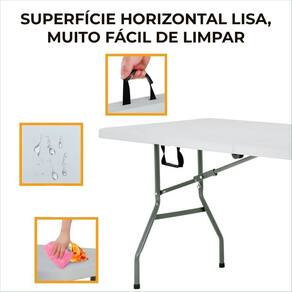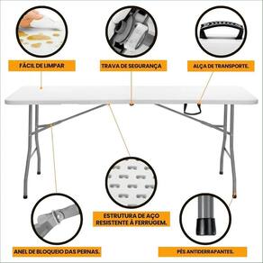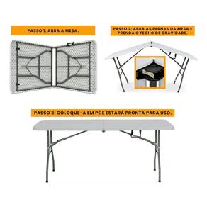 A Mesa Dobrável Evolux 180cm Branca é a solução definitiva para quem busca uma mesa espaçosa, versátil e fácil de transportar. Com um tampo amplo de 1,80 metro, ela oferece o dobro de espaço em comparação com mesas menores, sendo perfeita para acomodar confortavelmente até 8 pessoas. Sua estrutura robusta em aço e o tampo em polietileno de alta densidade (HDPE) garantem alta resistência e durabilidade. O design inteligente, com um sistema de pés dobráveis e uma alça de transporte, permite que a mesa se transforme em uma maleta, facilitando o transporte e o armazenamento em qualquer lugar. É a escolha ideal para eventos, festas, churrascos, feiras ou para uso diário em casa, no jardim ou em acampamentos.