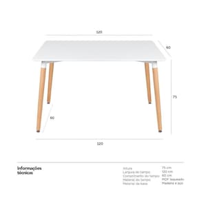 Fabricante: Mobili | RBN: 17100657011 | Cor: Multicolorido | Cômodo indicado: Cozinhas | Tonalidade: Multicolorido | Produto: Mesa | Tipo: Centro | Material do tampo: MDF laqueado (laca fosca) | Material da base: Madeira | Altura: 75 cm | Garantia do fabricante: 3 meses | Largura: 120 cm | Peso do produto: 10 kg | Comprimento: 60 cm