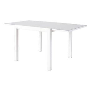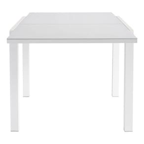 Resumo das Caracteristicas: - Mesa Extensivel Retangular Lyra na cor branca - Estrutura de aluminio e tampo de vidro temperado - Medidas: 75 cm de altura, 90 cm de largura e comprimento extensivel de 90 cm para 160 cm - Acomoda ate 4 pessoas - Nao dobravel, nao giratoria e nao empilhavel - Ideal para areas externas sem cobertura, molhadas e umidas - Peso: 29 kg - Chega desmontada - Garantia de 24 meses do fabricante - Atencao: Acompanha apenas a mesa. Marca: Não Informado