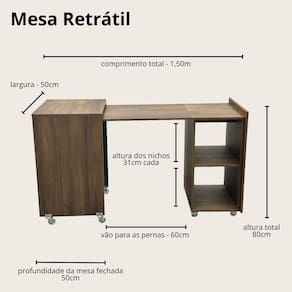 A versatilidade incrível da Mesa Retrátil a torna ideal para múltiplos usos! Quando fechada, ela ocupa o mínimo de espaço, mantendo a harmonia do ambiente. Ao abrir, revela-se uma mesa robusta e estável, incrivelmente versátil. É ideal para seu home office produtivo, um cantinho de estudo inspirador, para desfrutar de refeições rápidas, como apoio em salas, para trabalhos manuais, ou onde mais sua necessidade exigir. Sua funcionalidade se adapta perfeitamente a: