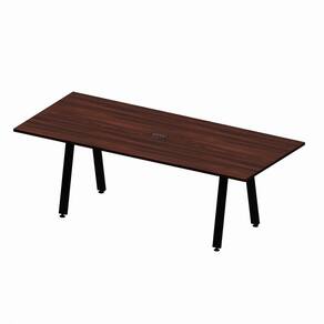 Mesa de reunião com espaço para até 8 pessoas, com estrutura firme e caixa de tomadas para conexão rápida de equipamentos. Solução inteligente e pronta para uso em ambientes corporativos modernos, como salas de reunião ou coworkings.