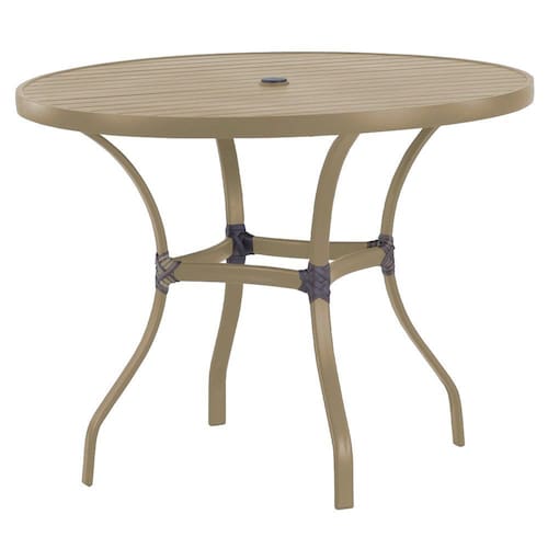 Itens Inclusos: 1 Mesa Roma com Tampo Ripado em Alumínio com furo central + tampa