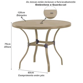 Dimensões da Mesa com Tampo Ripado: Altura: 75 cm Largura: 120 cm Profundidade: 120 cm