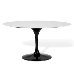 A Mesa Saarinen Oval Carrara 135x90cm - Base Preta é a escolha perfeita para quem busca um mobiliário que transcende o tempo, unindo história, funcionalidade e um design excepcional, ideal para salas de jantar, escritórios ou qualquer ambiente que valorize a excelência em design.