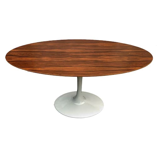 A Mesa Saarinen Oval Pau Ferro 160x90cm - Base Branca foi criada em 1957 por Eero Saarinen, a Mesa Tulip Saarinen resolveu o "mundo feio, confuso e incomum" embaixo de mesas. A Tulipa, é uma realização definidora de design moderno e uma adição intemporal para sua casa - um verdadeiro clássico.