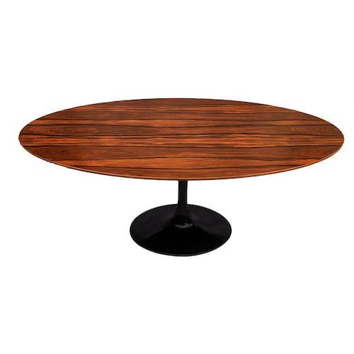 A Mesa Saarinen Oval Pau Ferro 180x100cm - Base Branca foi criada em 1957 por Eero Saarinen, a Mesa Tulip Saarinen resolveu o "mundo feio, confuso e incomum" embaixo de mesas. A Tulipa, é uma realização definidora de design moderno e uma adição intemporal para sua casa - um verdadeiro clássico.