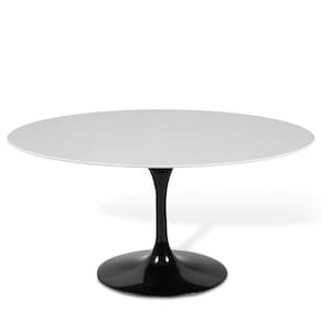 Mesa Saarinen Oval criada pelo Eero Saarinen. Foi projetada em 1956 como parte da icônica Coleção Pedestal, Saarinen procurou resolver a bagunça em casas e escritórios americanos criados por pernas de cadeiras e mesas convencionais, deixando assim um ambiente elegante e sofisticado.