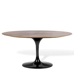 Mesa Saarinen Oval criada pelo Eero Saarinen. Foi projetada em 1956 como parte da icônica Coleção Pedestal, Saarinen procurou resolver a bagunça em casas e escritórios americanos criados por pernas de cadeiras e mesas convencionais, deixando assim um ambiente elegante e sofisticado.