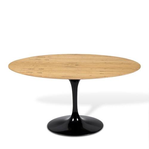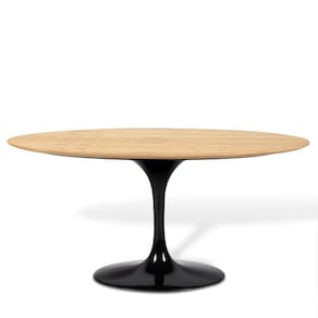 Mesa Saarinen Oval criada pelo Eero Saarinen. Foi projetada em 1956 como parte da icônica Coleção Pedestal, Saarinen procurou resolver a bagunça em casas e escritórios americanos criados por pernas de cadeiras e mesas convencionais, deixando assim um ambiente elegante e sofisticado.