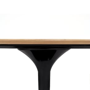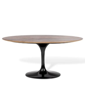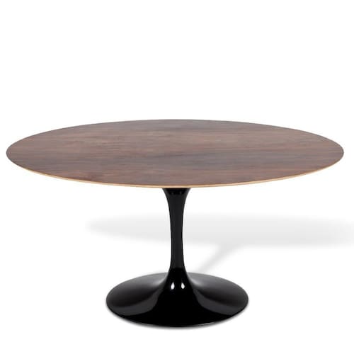 Mesa Saarinen Oval criada pelo Eero Saarinen. Foi projetada em 1956 como parte da icônica Coleção Pedestal, Saarinen procurou resolver a bagunça em casas e escritórios americanos criados por pernas de cadeiras e mesas convencionais, deixando assim um ambiente elegante e sofisticado.
