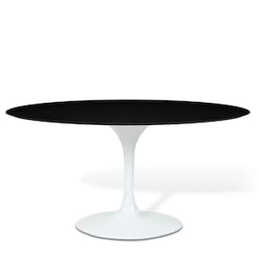 Mesa Saarinen Oval criada pelo Eero Saarinen. Foi projetada em 1956 como parte da icônica Coleção Pedestal, Saarinen procurou resolver a bagunça em casas e escritórios americanos criados por pernas de cadeiras e mesas convencionais, deixando assim um ambiente elegante e sofisticado.