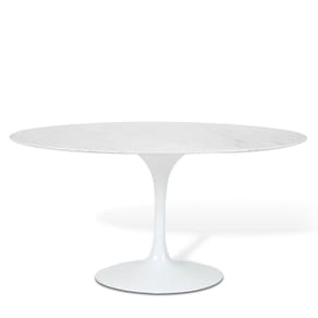 Mesa Saarinen Oval criada pelo Eero Saarinen. Foi projetada em 1956 como parte da icônica Coleção Pedestal, Saarinen procurou resolver a bagunça em casas e escritórios americanos criados por pernas de cadeiras e mesas convencionais, deixando assim um ambiente elegante e sofisticado.