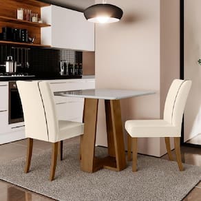 O Conjunto de mesa Atenas com 2 cadeiras é perfeito para quem procura modernidade e praticidade. A mesa possui acabamento em pintura verniz vitreo, deixando-a mais bonita, além de se adequar a qualquer ambiente, por conta de seu tamanho e estrutura. As cadeiras são revestidas em tecido veloplus, macio e confortável. Com ele, sua casa ficará ainda mais bonita e aconchegante. MEDIDAS: Medidas Mesa: [A] = 78 cm [L] = 90 cm [P] = 90 cm Medidas Cadeiras: [A] = 93 cm [L] = 42 cm [P] = 61 cm MODELO: Conjunto de Mesa Atenas e 2 Cadeiras Padua MARCA: Dobuê COR: Carvalho/Off White/Bege ESTRUTURA: MDP / MDF TECIDO DA CADEIRA: Veloplus REVESTIMENTO CADEIRA: Assento: Espuma D20/ Encosto: Espuma D13