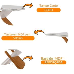 Mesa Sala De Jantar Carol 180cm Em Mdf E Vidro Com Canto Copo Off White/ Imbuia/ Serig. Off