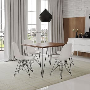 Mesa Sala De Jantar Industrial Clips Amêndoa 120x75 Com 4 Cadeiras Eiffel Brancas De Ferro PretoO Jogo de Mesa 4 Cadeiras Eames Clips se destaca pelo design moderno e sofisticado. A Cadeira Eames Eiffel é confeccionada em polipropileno, sua base é em ferro, o que confere total resistência e conforto. O Jogo de Mesa 4 Cadeiras Eames Clips da vida ao ambiente além de combinar com todos os tipos e cores de móveis.CARACTERISTICAS CADEIRATipo: CadeiraModelo: EiffelCor: Branco Base: Ferro na cor PretaDIMENSÕES DO PRODUTOAltura: 85 cmLargura: 47 cmProfundidade: 50 cmAssento x Chão: 45 cmContém: 04 cadeirasCARACTERISTICAS MESATipo: MesaModelo: ClipsCor: AmêndoaBase: Ferro na cor PretaDIMENSÕES DO PRODUTOAltura: 76cmLargura: 120cmProfundidade: 75cmObs: Imagens Meramente IlustrativaMesa Sala de Jantar Industrial Clips AmÃndoa 120x75 com 4 Cadeiras Eiffel Brancas de Ferro Preto
