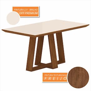 Detalhes Técnicos da Mesa -Acabamento:Pintura UV Texturizada -Material da Base:MDF -Material do Tampo:MDP E MDF -Medida da Mesa Montada:90CMx160CMx80CM -Tonalidade da Mesa:Freijó/Off Premium -NÃO POSSUÍ VIDRO