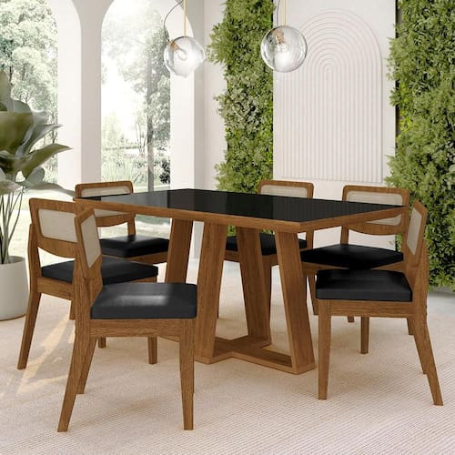 Detalhes Técnicos das Cadeiras -Assento Tapeçados, Estofados e Fixos -Encosto Tela sintética -Peso Suportado da Cadeira:90KG -Facilidade da Montagem:Média -Tonalidade da Cadeira:Freijó/Corino Preto -Espuma do Assento:D16 -Tipo de Pintura:UV Texturizada -Material da Estrutura:MDF 25/18mm -Medida da Cadeira:84CMx45CMx53CM