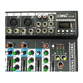 Mesa Som Lelong 7 Canais Bluetooth Usb Com Equalizador Le-709Canais de entrada:MIC: TomadaEstéreoMP3/EQCartão USB sonoro: Tipo ABluetoothCanais de saída:MAIN OUT: TomadaPhones OUT: TomadaAuxiliar:FX OUT Return IN Função canal de entrada:EQ/2-band: Alto ganho +-15dB Frequência/ Baixo ganho +-15dB FrequênciaPeak LED: LED acende quando o sinal EQ atinge 3dB abaixo do nível de recorteMedidor de nível: 2x 5 segmento medidor LED +6,+3,0,-3,10dB Efeitos/FX: 16 DSP embutidoPhanton power voltagePower input: Tipo AConsumo de energia7 canais de EntradaPode ser alimentado via USBEntrada de energia USBEntrada e saída de canalUSB para transferência e gravação de dadosPainel digital numéricoModulador digitalEntrada: 100 a 240v Bivolt Saída: 5v16 DSP embutidoEqualizador estéreo integradoChassi de metal robustoFonte de alimentação DC 8V/2A ou fonte de alimentação pela USB.Dimensões do produto: 33 x 23 x 4,0 cm =========================================================ITENS INCLUSOS:01 Mesa de som01 Fonte bivolt01 Manual