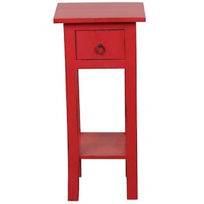 Sofá perfeito ou toque de cabeceira, esta mesa final chique de chalé é um palco estiloso para carregar um telefone ou um livro favorito. Esta pequena mesa lateral de duas camadas e desgastada adicionará brilho a qualquer espaço minúsculo que você tenha de sobra. Guarde os itens essenciais na prática gaveta. A prateleira é ideal para toalhas de mão, uma cesta com produtos de higiene pessoal ou um difusor de óleo essencial!