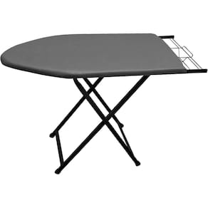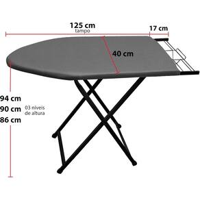 Praticidade pensada nos detalhes: suporte integrado para o ferro, montagem simples e dimensões de embalagem práticas para transporte e armazenamento. Perfeita para uso doméstico e para quem precisa de uma tábua robusta e com área de trabalho ampla.