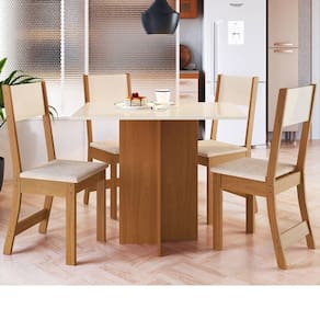 O Conjunto de Mesa de Jantar Talita reúne praticidade e elegância em um único produto, sendo composto por uma mesa e quatro cadeiras. Seu design moderno e compacto é perfeito para ambientes menores, proporcionando conforto e estilo em todas as suas refeições. Ideal para momentos em família ou encontros com amigos!Dimensões do conjunto montado:Altura: 77 cmLargura: 91,8 cmProfundidade: 68 cmObservações:- Estrutura robusta em MDP e MDF, garantindo resistência e durabilidade por muito mais tempo.- Cadeiras com assentos acolchoados em espuma de poliuretano.- Revestimento dos assentos em tecido.- Design elegante e contemporâneo, com acabamento que valoriza qualquer espaço.- Ideal para cozinhas ou salas de jantar menores, aproveitando cada centímetro com charme e funcionalidade.
