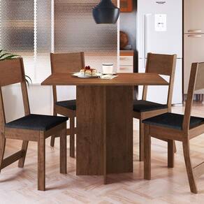 Mesa Talita Com 4 Cadeiras Noce Com Assento Preto - Indekes O Conjunto de Mesa de Jantar Talita reúne praticidade e elegância em um único produto, sendo composto por uma mesa e quatro cadeiras. Seu design moderno e compacto é perfeito para ambientes menores, proporcionando conforto e estilo em todas as suas refeições. Ideal para momentos em família ou encontros com amigos!Dimensões do conjunto montado:Altura: 77 cmLargura: 91,8 cmProfundidade: 68 cmObservações:- Estrutura robusta em MDP e MDF, garantindo resistência e durabilidade por muito mais tempo.- Cadeiras com assentos acolchoados em espuma de poliuretano.- Revestimento dos assentos em tecido.- Design elegante e contemporâneo, com acabamento que valoriza qualquer espaço.- Ideal para cozinhas ou salas de jantar menores, aproveitando cada centímetro com charme e funcionalidade.