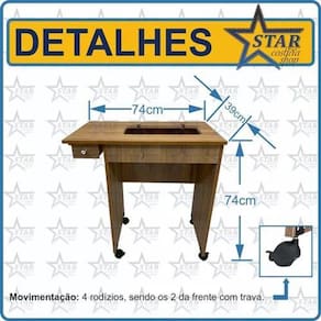 Itens inclusos: - mesalete completo o produto vai desmontado ; - manual de montagem passo a passo detalhado; - kit de rodinhas com trava; - porta cone de linha exclusivo - star costura; - mini catálogo - star costura - com cupom de desconto para próxima compra. Marca: Star Costura Ean: 7793671587040
