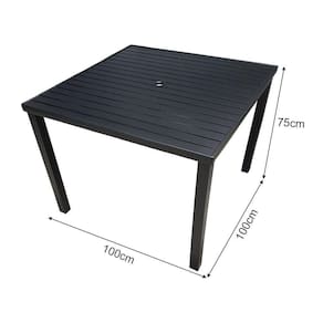 AS IMAGENS SÃO MERAMENTE ILUSTRATIVAS E PODEM SOFRER VARIAÇÕES DE COR E PEQUENOS DETALHES DE ACORDO COM O SEU MONITOR, ILUMINAÇÃO DO AMBIENTE E ATÉ MESMO A SUA PERCEPÇÃO VISUAL.Mesa Tampo Ripado Quadrada 1.00x1.00m AlumÃnio Preta