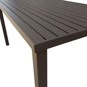 AS IMAGENS SÃO MERAMENTE ILUSTRATIVAS E PODEM SOFRER VARIAÇÕES DE COR E PEQUENOS DETALHES DE ACORDO COM O SEU MONITOR, ILUMINAÇÃO DO AMBIENTE E ATÉ MESMO A SUA PERCEPÇÃO VISUAL.Mesa Tampo Ripado Retangular 1.40x0.80m AlumÃnio Marrom