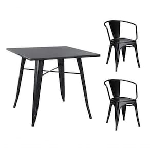 Conjunto Mesa Quadrada Tolix com Tampo de Metal + Cadeiras Tolix com Braço Estilo Industrial e Alta Durabilidade