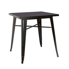 A Mesa Quadrada Tolix com tampo em metal, combinada com as elegantes cadeiras Tolix com braço, traz personalidade, resistência e sofisticação para bares, restaurantes, áreas gourmet ou espaços residenciais modernos
