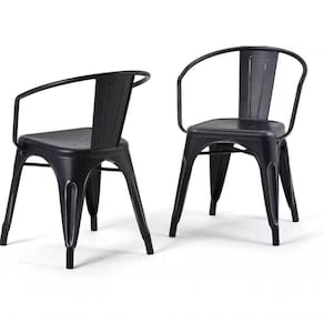 As cadeiras Tolix, também produzidas em aço carbono, são empilháveis, confortáveis e ideais para ambientes que valorizam o design industrial
