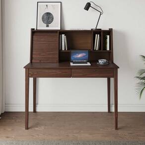 A estrutura principal em madeira assegura resistência e longevidade, enquanto as laterais e partes internas em MDP contribuem para estabilidade estrutural e acabamento preciso. A estante superior integrada otimiza o uso do espaço vertical, acomodando livros, objetos decorativos e itens de apoio com praticidade.