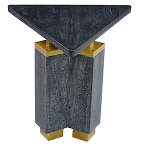 A mesa final triangular moderna Urban Port Andes - feita à mão com acabamento dourado e jateado, 20 polegadas, preta e latão