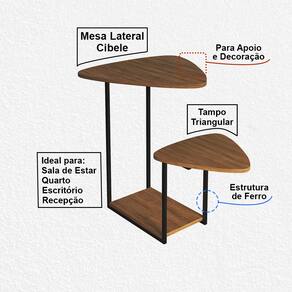 Características: Modelo: Mesa Lateral Cibele Material da Estrutura: Ferro Material do Tampo: MDP Formato: Esfiha Cor do tampo: Freijo Cor da estrutura: Preto Design moderno e funcional