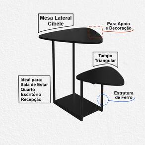 Características: Modelo: Mesa Lateral Cibele Material da Estrutura: Ferro Material do Tampo: MDP Formato: Esfiha Cor do tampo: Preto Cor da estrutura: Preto Design moderno e funcional