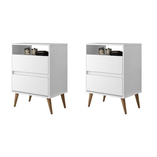 As Mesas de Cabeceira 2 Gavetas Lotus são ideais para compor a decoração do seu ambiente. Seu tamanho compacto se adapta a diversos tamanhos de espaço. Ideal para compor seu dormitório e até escritório possui espaço para objetos que precisam estar à mão, além de objetos decorativos e diversos outros itens. Funcional e lindo, seus pés palito garantem o charme e o requinte que você buscava. Altura do Conjunto: 71 cm Ambiente: null Ambiente Principal: Quarto Cor: Branco Informação Complementar: 2x Mesa de Cabeceira 2 Gavetas Lotus Branco Largura: 45 cm Altura: 71 Peso: 11 kg Profundidade: 37 cm Necessita Montagem: Sim