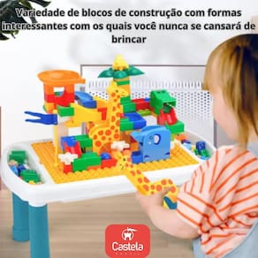 Transforme o momento de brincar em uma experiência criativa e organizada com a Mesa para Blocos de Montar Castela Esse conjunto incrível inclui uma mesa multifuncional, uma cadeira confortável e 81 peças de blocos de montar para inspirar a imaginação e estimular a criatividade das crianças.
