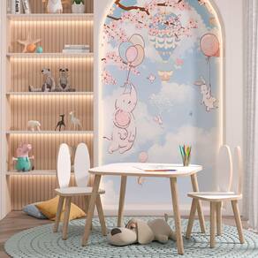 Lindo kit de mesa e duas cadeiras modelo coelho. Kit no mdf branco tx com pés no pinus cru. Mesa: altura de 42 cm e tampo 52x52 cm. Cadeiras: altura de 27 cm e assento 25x22cm. Marca: Não Informado Ean: 7895786491561