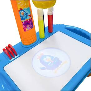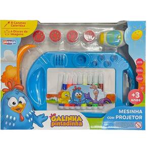 Mesa Projetor - Galinha Pintadinha - Yes Toys' é um produto que proporciona diversão e aprendizado. Esta mesa projetora da Galinha Pintadinha oferece diferentes discos com desenhos para serem projetados. Acompanha 4 canetas coloridas para a criação de diversos desenhos. O produto contém 3 discos com 8 desenhos em cada, totalizando 24 desenhos para escolher.