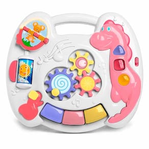 Mesinha de Atividades Didáticas - Musical e Luzes - Rosa - Zoop Toys: a Mesinha de Atividades da Zoop Toys vem com luzes e sons que ajudará no desenvolvimentos dos sentidos dos pequenos. Ele incentiva o bebê a explorar, perceber e aprender e desperta as habilidades motoras. Possui alças dobráveis e pernas removíveis. Detalhes: • Luzes piscantes • Pianinho • Função musical • Perninhas removíveis • Alças dobráveis Modo de brincar: • Ao colocar o botão na posição “A” diminuirá o volume do som. Ao colocar o botão na posição “B” aumentará o volume. Na posição “OFF” o brinquedo ficará desligado • Aperte as teclas do teclado para emitir notas musicais e acender as formas geométricas do dinossauro. Em seguida será reproduzida uma música - Primeira tecla acende o TRIÂNGULO e reproduz a nota DÓ - Segunda tecla acende o QUADRADO e reproduz a nota RÉ - Terceira tecla acende o CÍRCULO e reproduz a nota MI • Gire as engrenagens para tocar diferentes músicas e acende as luzes. Continue rodando para a música seguir tocando • Aperte o SAXOFONE para emitir som e piscas as luzes do dinossauro • Pressione o botão para RODAR O CILINDRO e alternar entre os sonso do dia e da noite, enquanto as luzes do dinossauro piscam • Vire para CIMA e para BAIXO para alternar entre som da vaca, cachorro e do rato Informações: • Produto: Mesinha de Atividades Musical e Didática • Marca: Zoop Toys • Cor: Rosa • Tipo: Mesinha Infantil com Atividades para Bebês • Categoria: Brinquedos para bebês • Subcategoria: Mesinha de Atividades • Tamanho: Medidas Aproximadas da Mesinha: 14cm Altura (Montada) e 28cm Comprimento • Conteúdo: 01 Mesa de Atividades • Recomendação: para bebês a partir de 06 meses de idade Especificações: • Referência: ZP01041 • Código de Barras: 7899788406646 • Embalagem (C x A x L): 37.8 x 26.5 x 08 cm • Embalagem (Peso): 0.750 kg • Material / Composição: Plástico • Funcionamento: utiliza 03 Pilhas AA de 1.5V (Inclusas para Demonstração) • Registro: 005714/2019 • Certificado: Órgãos Autorizados - OCP´S (Organismos de Certificação de Produtos) Aviso: • As imagens são meramente ilustrativas • Os pesos, tamanhos e medidas são aproximados • As cores e estampas dos produtos podem ter variações • As informações são de responsabilidade do fabricante ou fornecedor