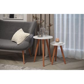 Jogo de mesa lateral redonda com pé palito é o móvel perfeito para o seu lar!