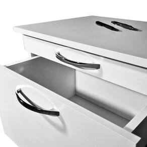 A DEKI MÓVEIS CLÍNICOS oferece mesas auxiliares com 2 (duas) gavetas, garantindo praticidade e organização no seu espaço de trabalho. Com essa configuração, é possível armazenar materiais e documentos essenciais de forma acessível, mantendo o ambiente sempre arrumado e funcional. As gavetas facilitam a separação de itens por categoria, otimizando o tempo e promovendo mais eficiência no dia a dia de consultórios e clínicas.